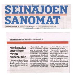 Jaamme Lakeuden Elämysliikunnasta vuosien varrelta kirjoitettuja lehtiartikkeleita. Tämä kunnianosoitus on julkaistu Seinäjoen sanomissa 7.-8. marraskuuta 2015. Pääset näkemään alkuperäisen lehtijutun tämän sivun lopussa. Kunnianosoitus esteettömien reittien puuhamiehelle Lakeuden Elämysliikunta ry:n puheenjohtaja Hannu Salo on saanut kunniamaininnan Esteetön Suomi -palkintoraadilta. Raati kiittelee Saloa, joka on yli kymmenen vuoden ajan toteuttanut lukuisia kehittämishankkeita, joissa lähtökohtina ovat olleet