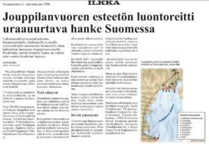 Jaamme Lakeuden Elämysliikunnasta vuosien varrelta kirjoitettuja lehtiartikkeleita. Tämä artikkeli on julkaistu Ilkka Pohjalaisessa 11.lokakuuta 2006 ja kirjoittajana on toiminut Annukka Latvala. Pääset näkemään alkuperäisen artikkelin tämän sivun lopussa. Esteetön kuntopolku valmis kesällä Uudet liikuntapaikat tarjoavat elämyksiä huonojalkaisillekin Jouppilanvuoren takamaastossa on kesän ja syksyn aikana kaadettu puita uuden kuntopolun alta. Reilun kilometrin pituinen valaistua lenkki valmistuu