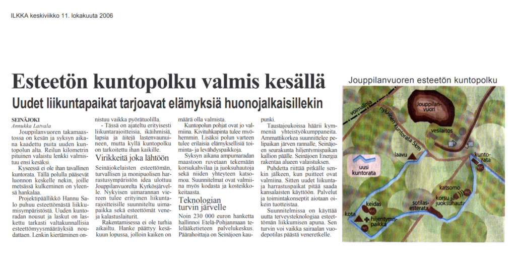 Jouppilanvuoren takamaastossa on kesän ja syksyn aikana kaadettu puita uuden kuntopolun alta. Reilun kilometrin pituinen valaistua lenkki valmistuu ensi kesäksi. Kyseessä ei ole ihan tavallinen kuntorata. Tällä polulla pääsevät luonnon keskelle nekin, joille metsässä kulkeminen on yleensä hankalaa.