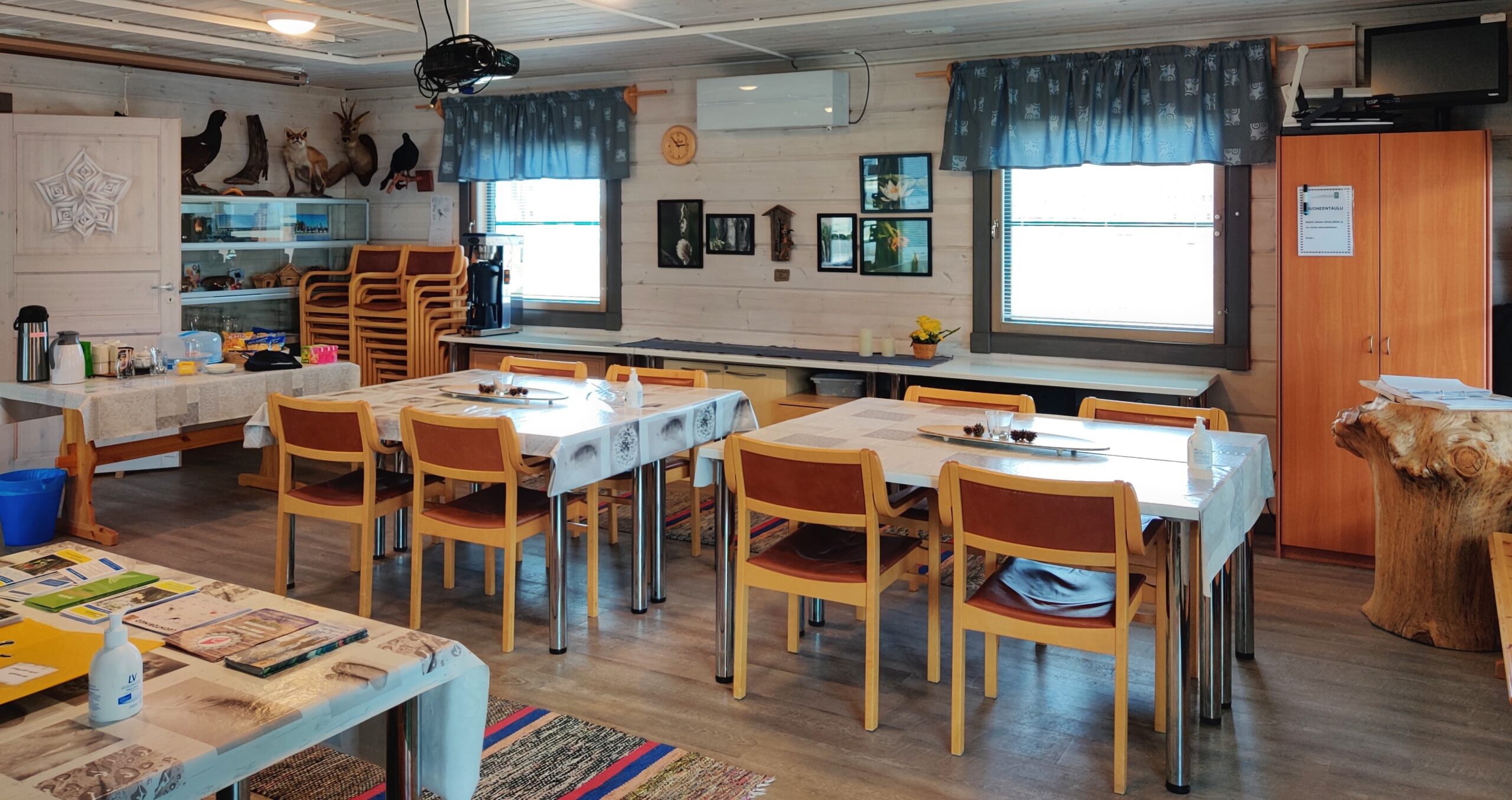 Luontotalon 84 neliömetrin tilat soveltuvat erinomaisesti perhejuhliin, tykypäiviin, koulutuksiin ja kokouksiin, sillä ne on suunniteltu monipuolisiksi ja esteettömiksi. Voimme järjestää myös isompia ulkoilmatapahtumia yhdistyksille, seuroille, työyhteisöille, päiväkodeille ja kouluille. Tiloissamme on sisätilat noin 40 hengen ruokailuun ja 65 hengen tapahtumiin. Kesäisin käytössä on tilava terassi, jolta avautuvat upeat näkymät Kyrkösjärvelle.