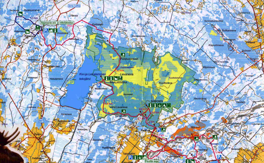 Reitistön ydin on Levanevan luonnonsuojelualue, jossa reitti kiertää hienoa suomaisemaa poiketen välillä metsäsaarekkeisiin ja suon reunametsiin. Rajavuoren ja Pässilän reitit kulkevat vaihtelevissa talousmetsissä, lehdoissa, kalliomaastoissa ja osittain myös metsäuria ja sorateitä pitkin. Rajavuoren erä- ja retkeilykeskus ja Pässilän maja ovat Levanevan kahden lähtöpisteen (Maalarinmaa ja Tainuskylän tienvarsi) lisäksi hyviä lähtöpaikkoja retkelle. Ne ovat varaustupia, mihin tehdään varaukset Laihian tai Jurvan kuntien kautta. Kalajaisjärven rannassa sijaitsee Ilmajoen kunnan leirikeskus, joka on myös varattavissa isomman porukan käyttöön.