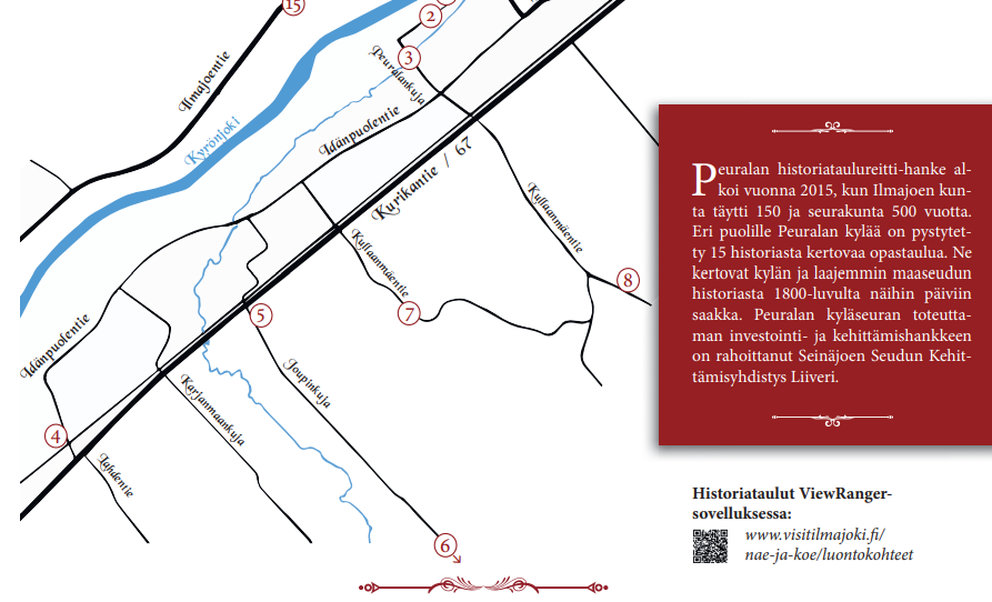 Peuralan historiataulureitti-hanke alkoi vuonna 2015, kun Ilmajoen kunta täytti 150 ja seurakunta 500 vuotta.