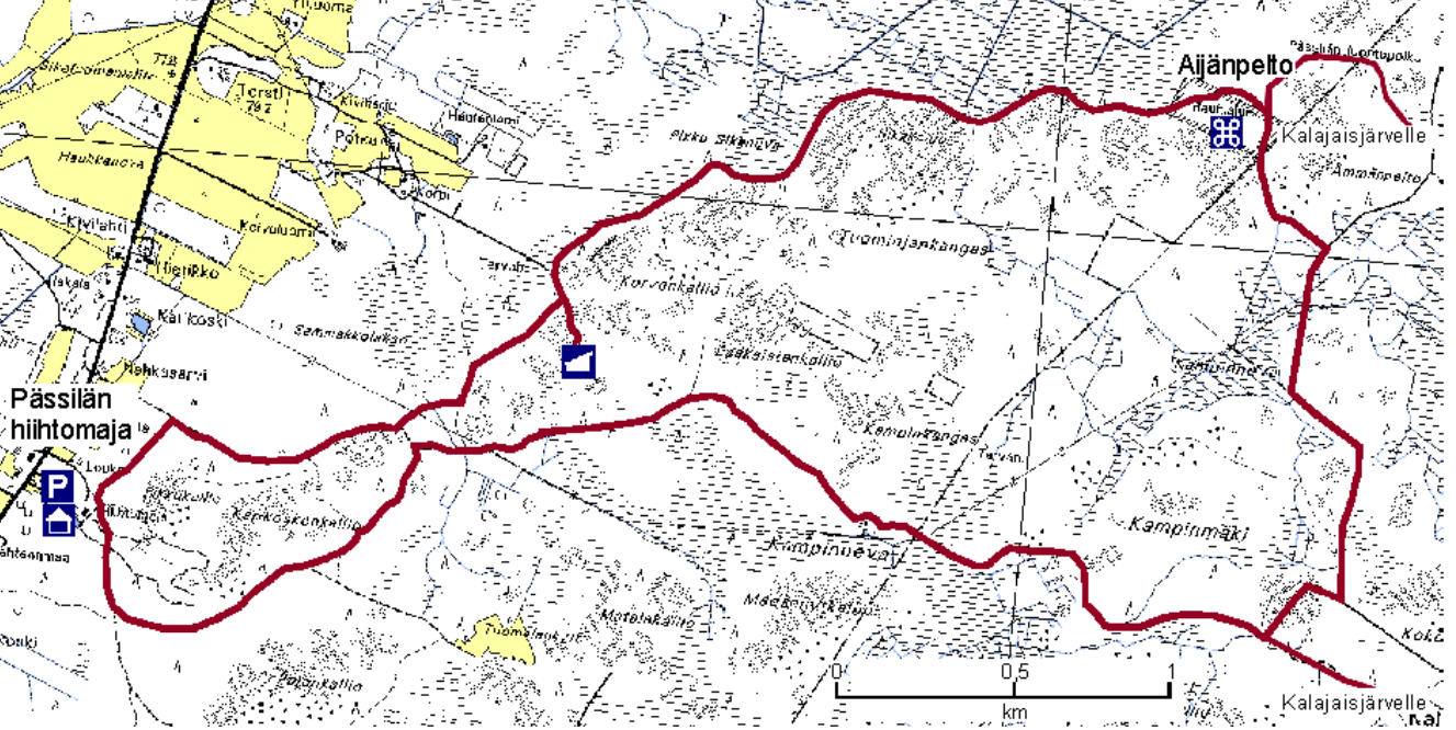 Reitti kulkee vaihtelevassa talousmetsässä, osittain soisissa ja kallioissa maisemissa. Reitti pistäytyy Äijänpellon lehtojensuojelualueella Jurvan ja Ilmajoen rajamailla. Itse Äijänpelto on kuitenkin kivipelto. Reitti ylittää myös ojittamattoman suon pitkoksia pitkin. Reitin varrella on yksi laavu. Lisäksi reitti jatkuu Ilmajoen puolelle Kalajaisjärven maisemiin. Reitistä vastaa Jurvan kunta.