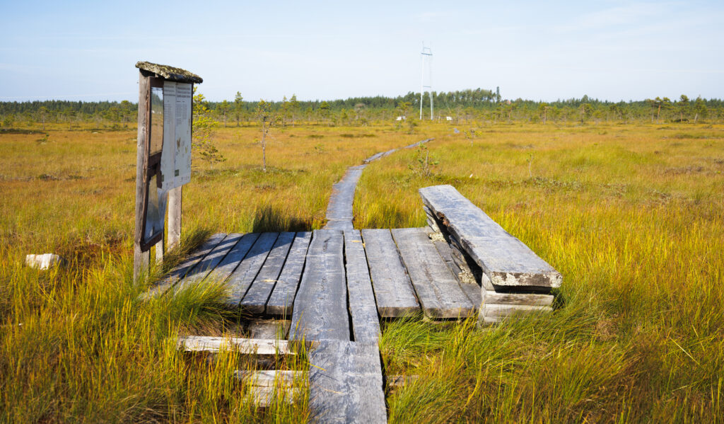 • Reitti: täältä alkaa 700 metriä pitkä esteetön pitkospuureitti, lankkureitti, joka  kulkee luontolavalle eli lintujentarkkailulavalle asti.
